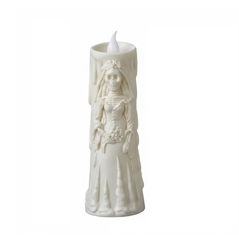 Set the Mood with Eerie Flickering Light – Safe, Battery-Operated Haunted Wedding Skeleton Candles