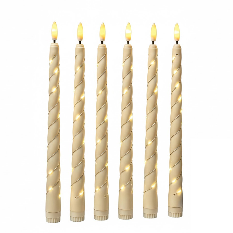 10.6"Realistic Spiral LED Taper Candles with Fairy String Lights