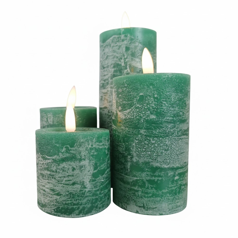Rustic Marble-Textured Flameless LED Candles - Scented Soy Wax Blend - Set of 4